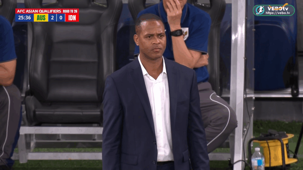Patrick Stephan Kluivert looked dejected after his first debut international coaching match as Indonesia head coach ended in 5 goals getting past Maarten Paes while the Indonesia side only managed 1 goal in return